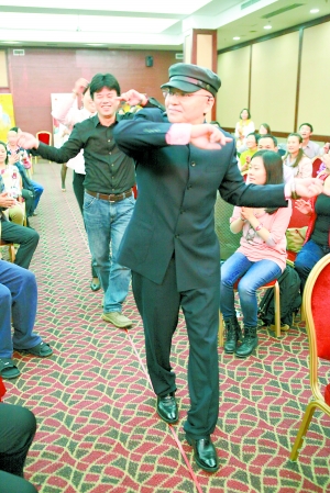 催眠养生体验营中,陈建国(后)一直很活跃,他表示,他能戒烟成功,也归功于对催眠的信任。图/重庆晨报见习记者 肖楷韬