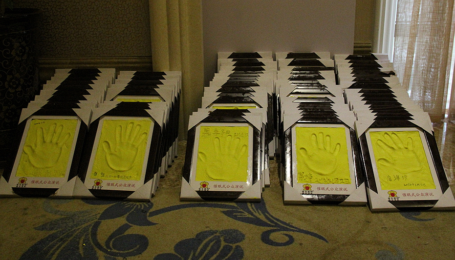 四天四夜的催眠式公众演说班结束,每一位弟子家人都将获得一枚亲手制作的杨安国际《超能催眠式公众演说班》手模一套,瞬间的精彩将化为永恒的纪念。