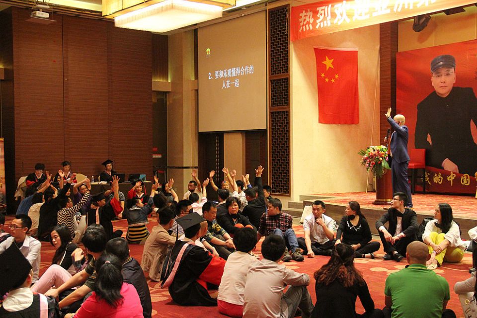 活动简介:在会场里,全体学员被分成了5组,每组大概有20-30人,每一个小组围成一个圈圈,团团坐在一起,大家相互介绍相互认识。之后,每一个组内的成员相互拥抱。