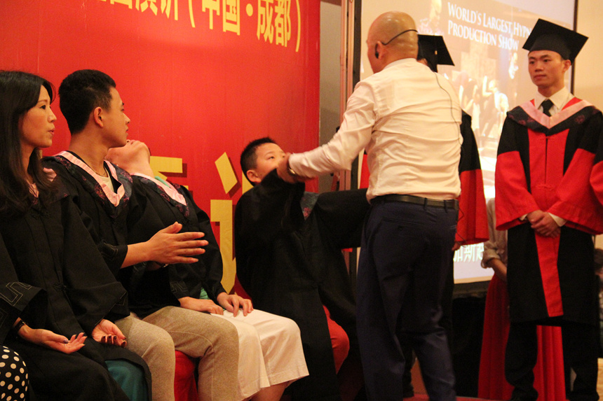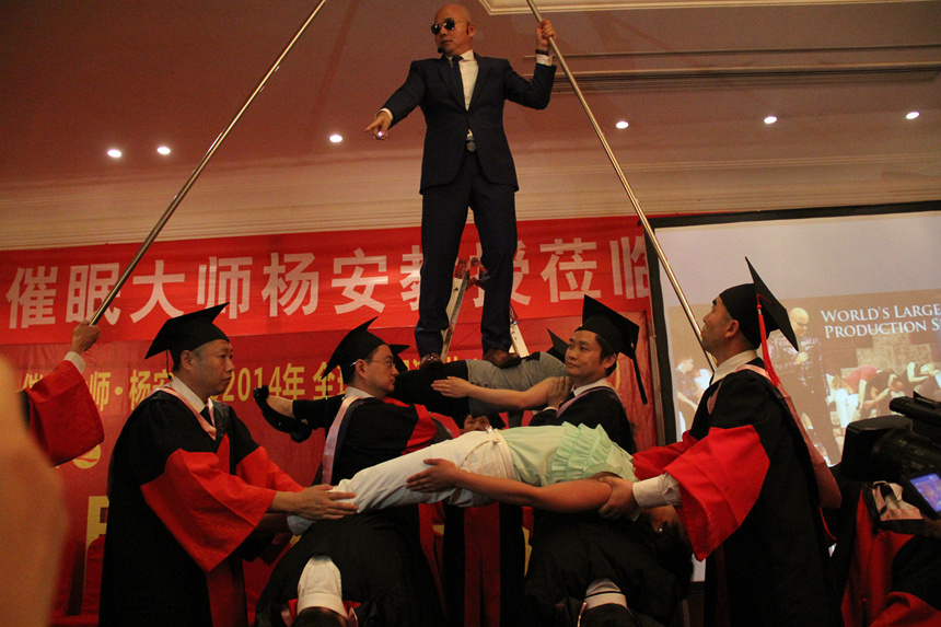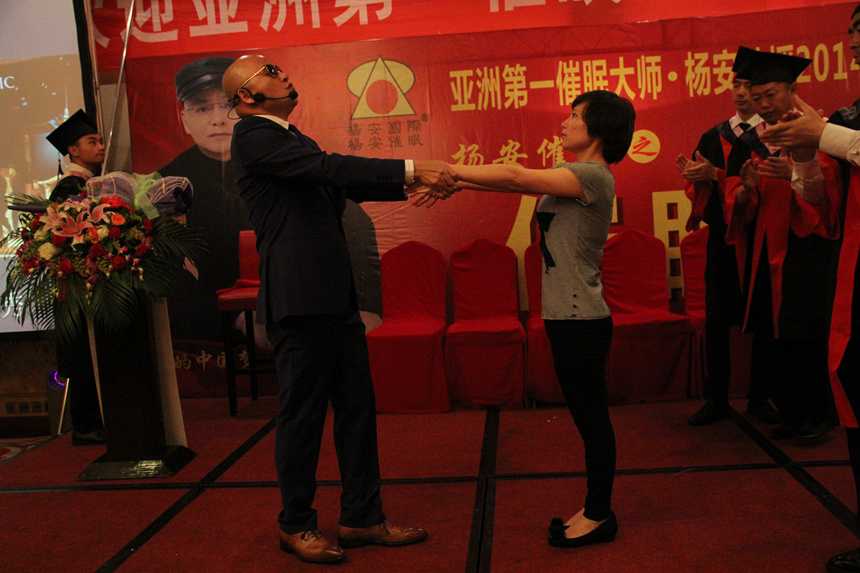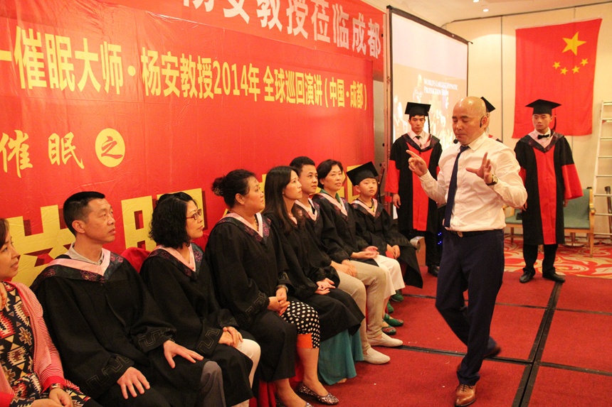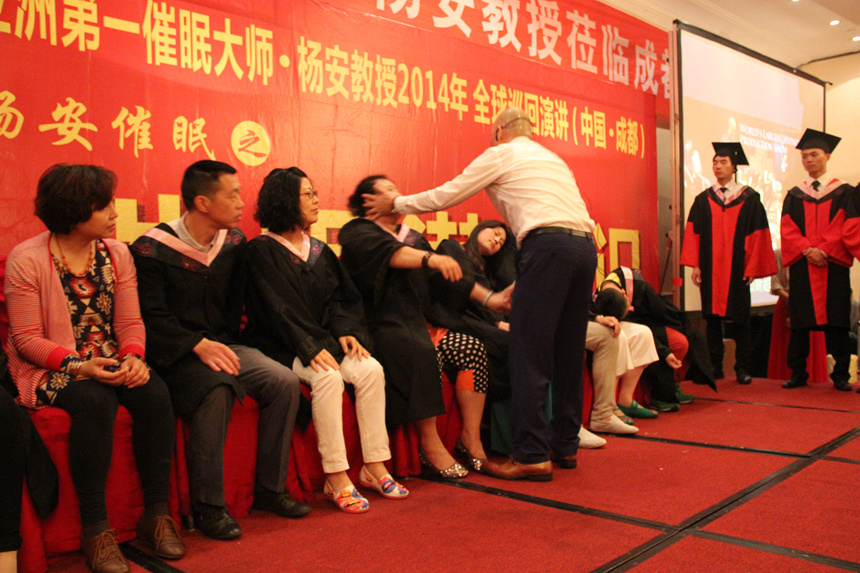 这样写出来,也许你会觉得有些夸张,可是可是,当你走进中国马修杨安教授的课程现场,当你亲眼目睹中国马修杨安教授在舞台上,瞬间以迅雷不及掩耳的速度,唰唰唰,在几秒的时间内连续催眠了十多位学员的时候,你将被这种超级的能量震撼的目瞪口呆。