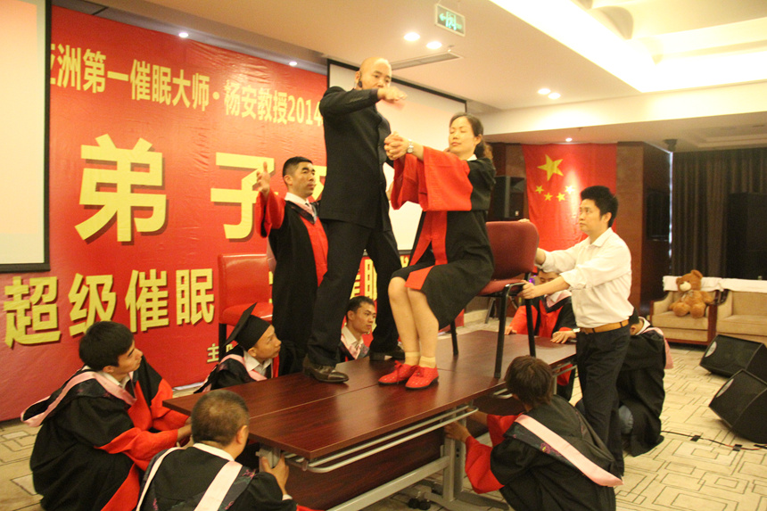 在别人看起来非常神奇的催眠变钢板表演,在杨安教授的超级催眠师班上,每个人都可以学会。