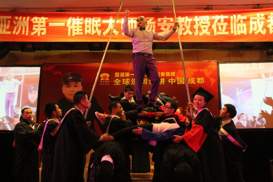 2014年11月26-28日,中国.成都,亚洲第一催眠大师杨安教授大型演讲取得圆满成功。此次大型演讲的主题有《世界顶级催眠秀》、《催眠潜意识》、《催你转运》。