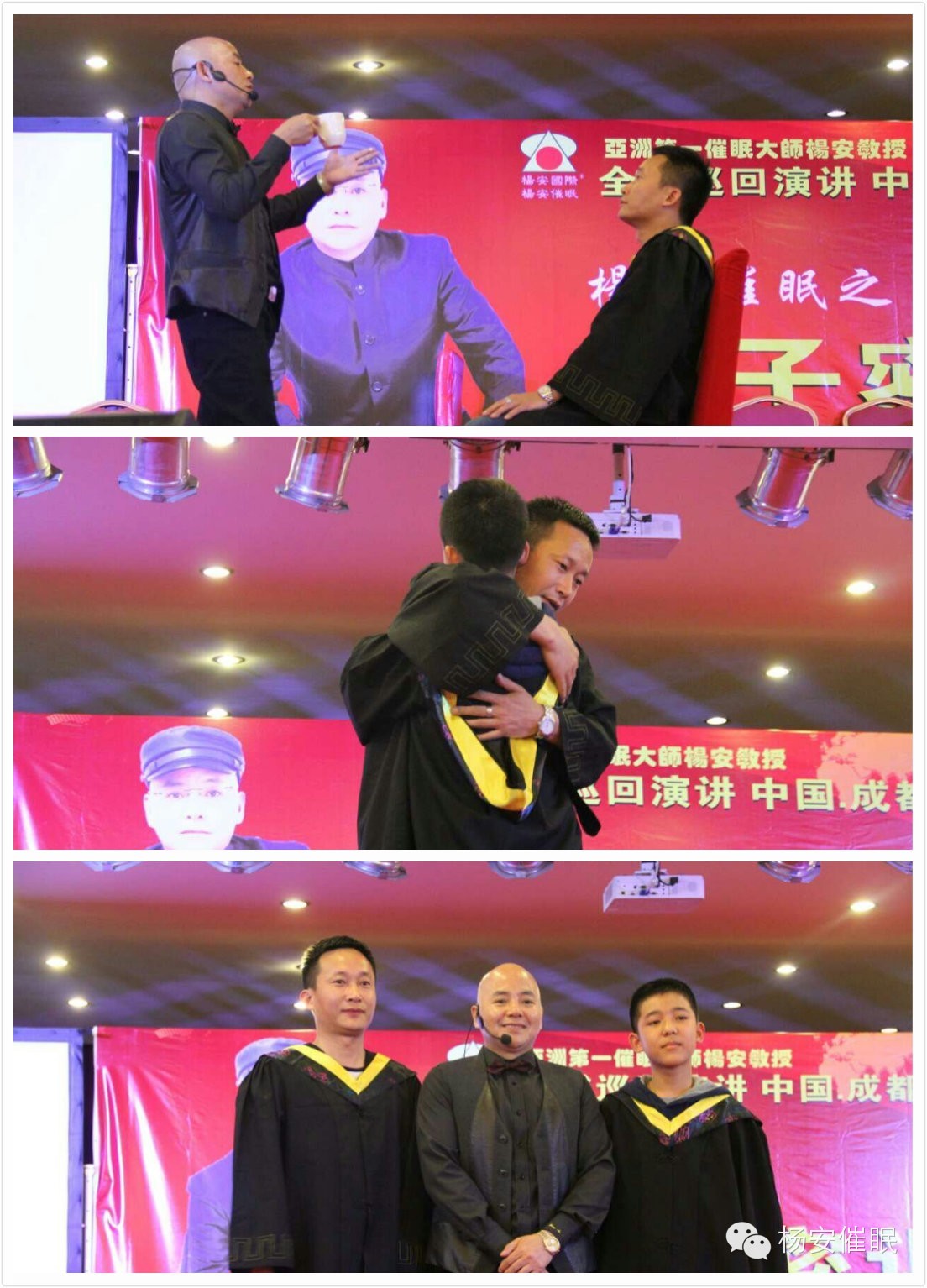 恩师亚洲第一催眠大师杨安教授闪亮登场,弟子热情击掌迎接恩师出场......