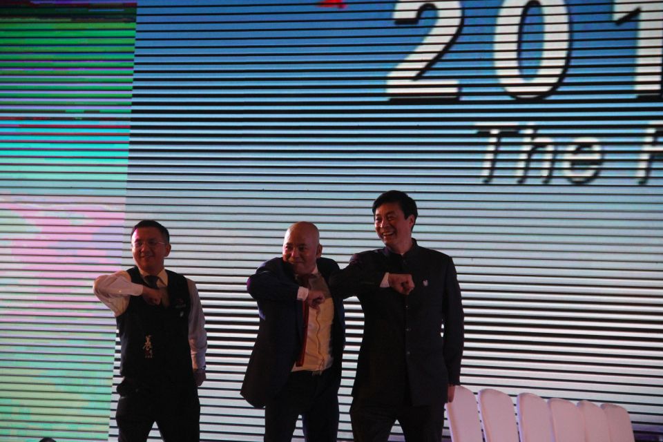 巴江水集团董事长王伟、武陵山珍集团董事长毕麦与恩师亚洲第一催眠大师杨安教授