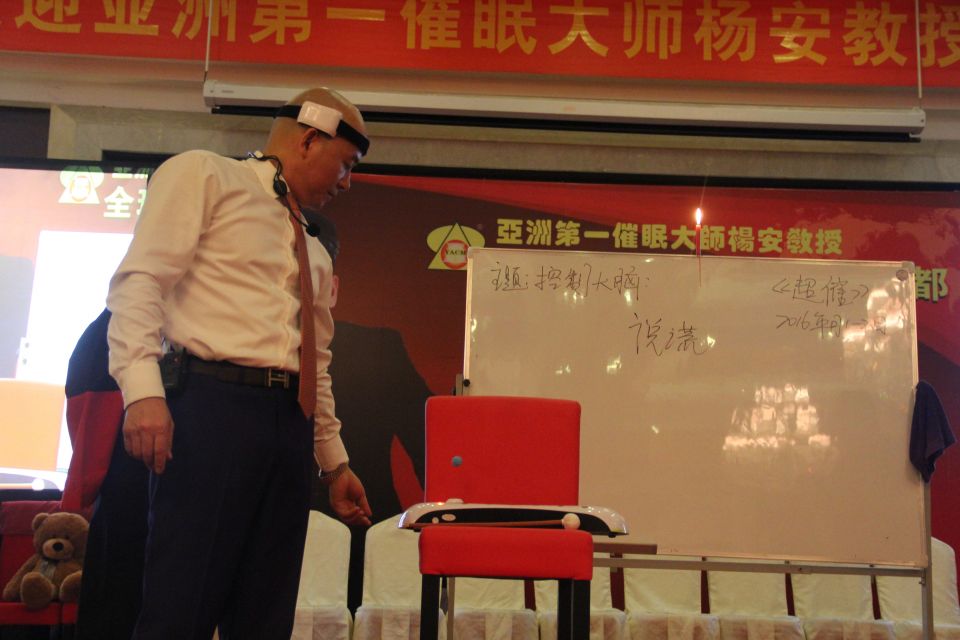 杨安教授展示脑波启动脑波仪的神奇力量